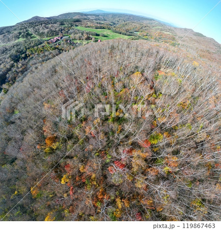 空撮「岩手県」平庭高原の白樺林と紅葉