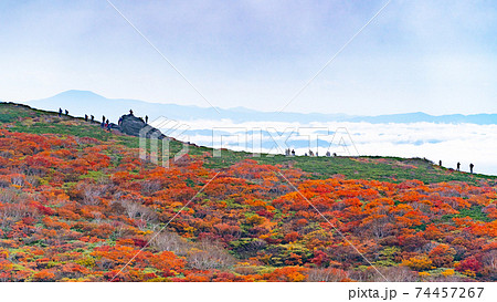 栗駒山 神の絨毯 全山紅葉美 登山客 雲海
