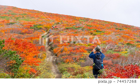 栗駒山 神の絨毯 全山紅葉美 登山客