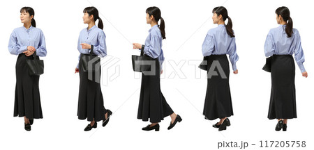 ビジネスバッグキャリアウーマンが歩くの全身人物切り抜き素材