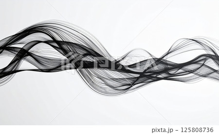Elegant black ink lines create flowing abstract design across white canvas, evoking sense of movement and fluidity. This artwork embodies modern aesthetic and artistic expression