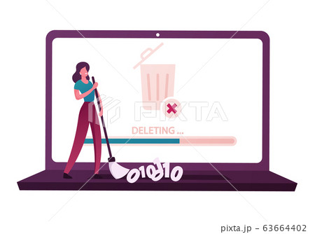 Cleaning Computer Space, Deletion of Secret Information and Docs. Tiny Female Character Sweeping Binary Code