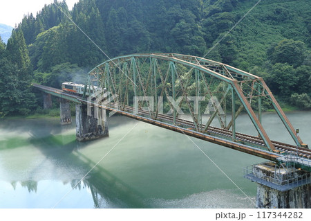只見川第五橋梁を渡る只見線