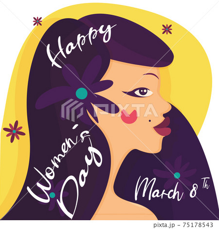 illustration of female face from the side surrounded by leaves and flowers for women's day celebration greeting card