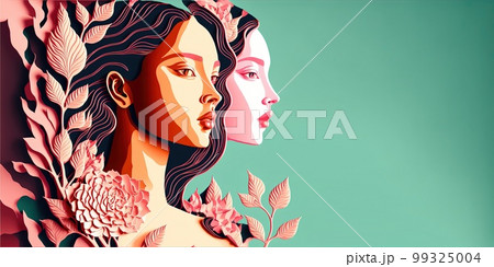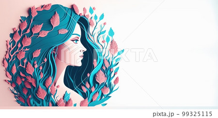 Illustration of face and flowers style paper cut with copy space for international women's day