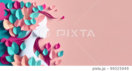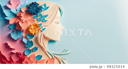 Illustration of face and flowers style paper cut with copy space for international women's day