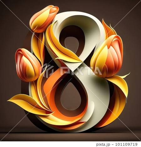 Illustration of number 8 and floral decoration for background and banner for 8th march women's day with copy space