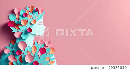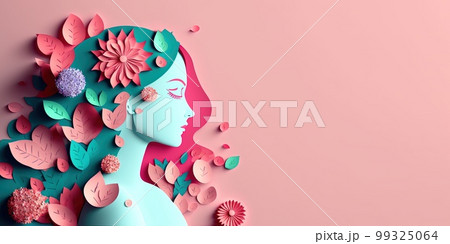 Illustration of face and flowers style paper cut with copy space for international women's day