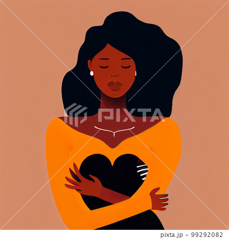 Female person is hugging herself. Love yourself concept. Embrace Equity is campaign theme of International Women's Day 2023