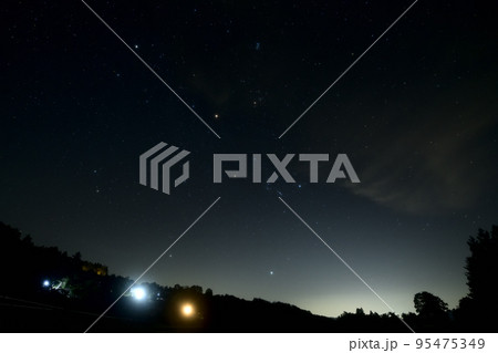 北杜市長坂町、未明の空、灯り点して頂き目指す登山者