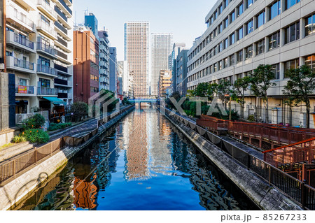 運河沿いの住宅地 百代橋(東京都港区芝浦)から新芝南運河の向こうに芝浦アイランド
