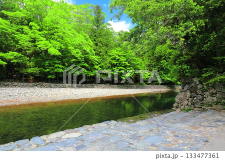 【三重県】晴天の伊勢神宮の宇治橋鳥居