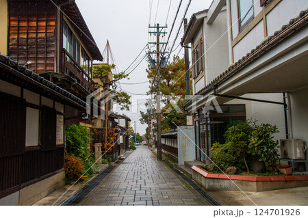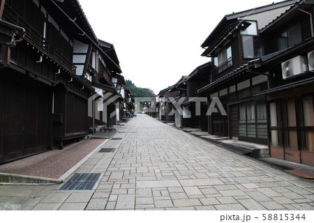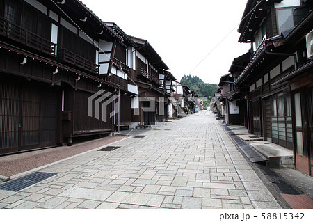 富山県 氷雨降る おわら風の盆の八尾 鏡町通りの街並み