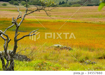 日本 長野県諏訪郡の八ヶ岳中信高原国定公園中部の霧ヶ峰にある八島ヶ原湿原と八島ヶ池
