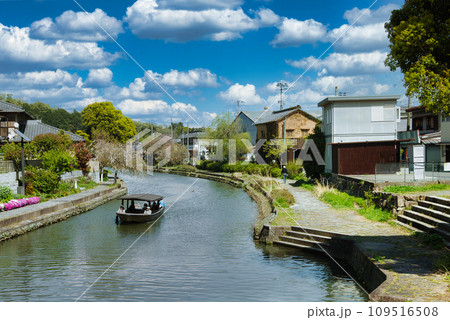 日本の川風景:水郷巡りで有名な観光地の近江八幡市八幡堀