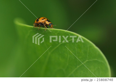 葉っぱの上にいるニジュウヤホシテントウ