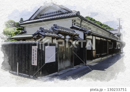 水彩画風 八浜の町並み 町並み保存拠点施設 岡山県玉野市