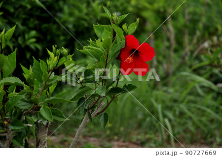石垣島 玉取埼展望の近くに咲く赤いハイビスカス ブッソウゲ