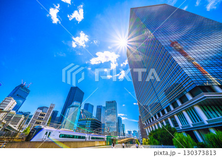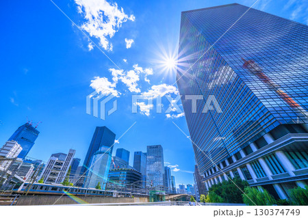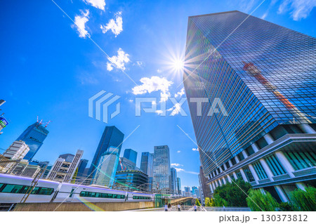 日本の東京都市景観 東京のビジネス街・丸の内などを望む。左下は東京駅
