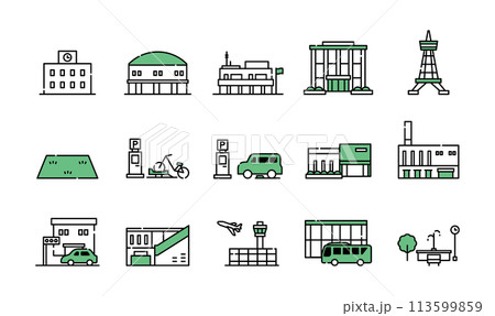 建物シリーズ4 公共施設1 カラーラインアイコンのセット