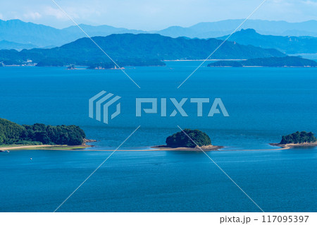牛窓オリーブ園から見た夏の黒島ヴィーナスロード1 岡山県瀬戸内市