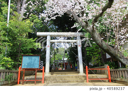 世田谷・六所神社の鳥居と桜
