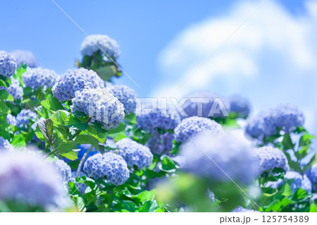 梅雨に咲く 綺麗な青いアジサイ 初夏の花