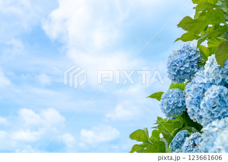 青い紫陽花と青空