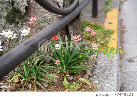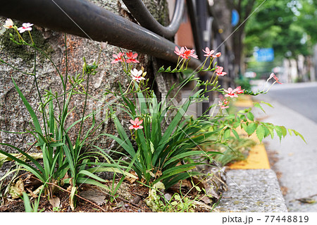自然 植物 シロバナツユクサ、クレープの様で半透明の白い花びらが美しい