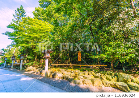 日本の寒川都市景観 相模國一之宮 寒川神社。天皇皇后両陛下幣饌料御下賜記念植樹=令和6年7月21日