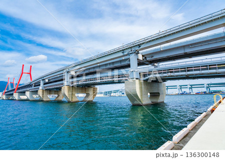 兵庫県神戸市 六甲アイランドから望む六甲大橋