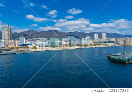 兵庫県神戸市。海、山、空、街。海と六甲山系。