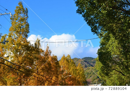 風景 秋 六甲山系 修法ヶ原池 再度公園
