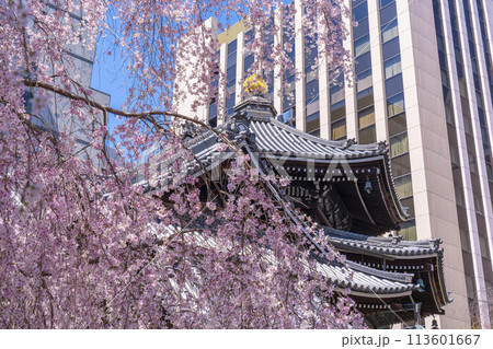 京都 紫雲山頂法寺 六角堂 美しい満開の枝垂れ桜(京都市中京区)