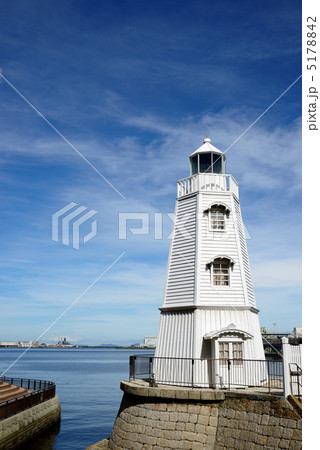 大阪府堺市堺区にの青空に映える旧堺燈台を撮影したもの