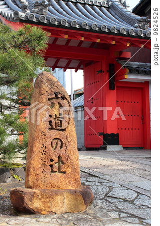 京都の町並み 六道珍皇寺山門と門前の「六道の辻」碑