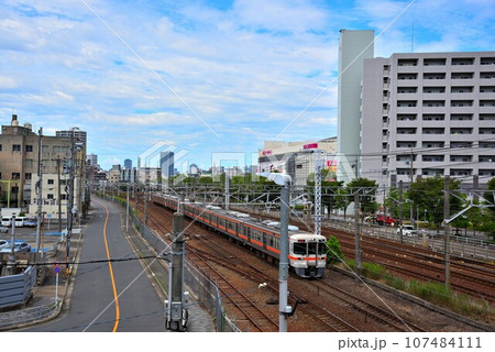 《愛知県》名古屋都市風景 熱田区六野歩道橋から見た風景 JR東海道線と名古屋鉄道
