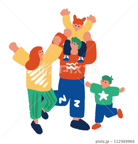 喜ぶ家族のシンプルでフラットなイラスト