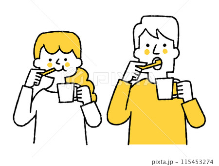 一緒に歯を磨いている男性と女性