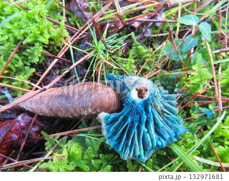 自然 茸 ムラサキヤマドリタケ、広葉樹林などの林床に発生。梅雨時や秋の彼岸頃の発生が多いそうです