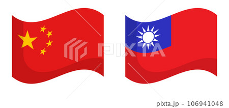 なびく中国国旗と台湾国旗のアイコンセット。ベクター。