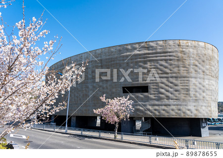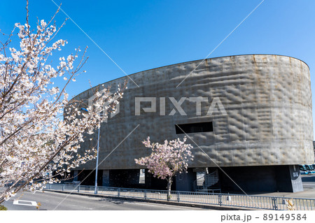 兵庫県南あわじ市 春の淡路人形座の劇場と桜