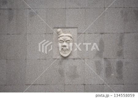 Face of Terracotta warrior on the facade of Terracotta Army museum in Xian, China