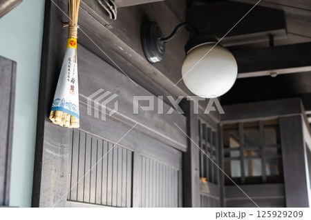 京都市指定有形文化財 長江家住宅(典型的な京町家)外灯と祇園祭の船鉾粽(ちまき)