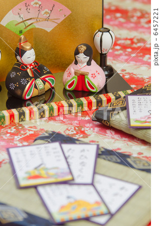 ひな祭りで貝合わせの遊びをする女の子のイラスト/線画なし