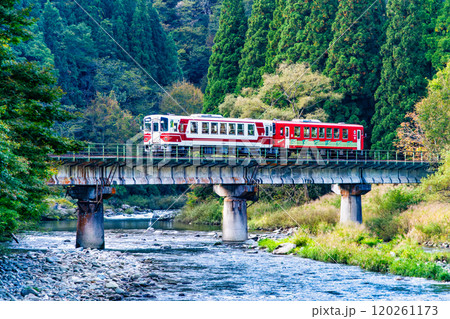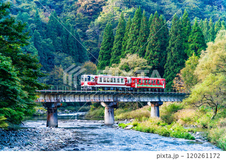 紅葉の秋田の風景 秋田内陸縦貫鉄道