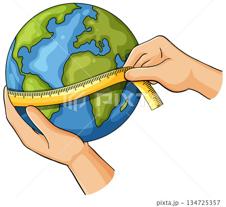 Hands Measuring Planet Earth with Yellow Tape