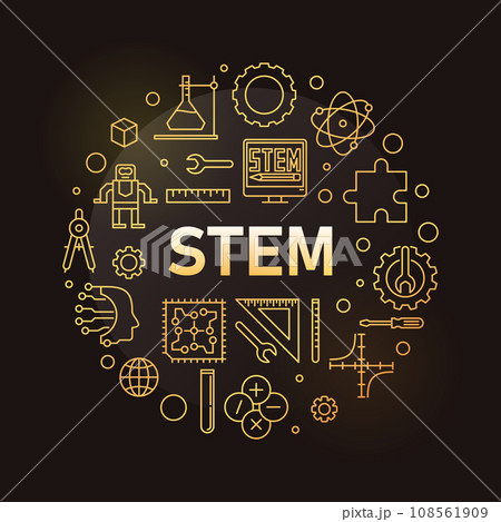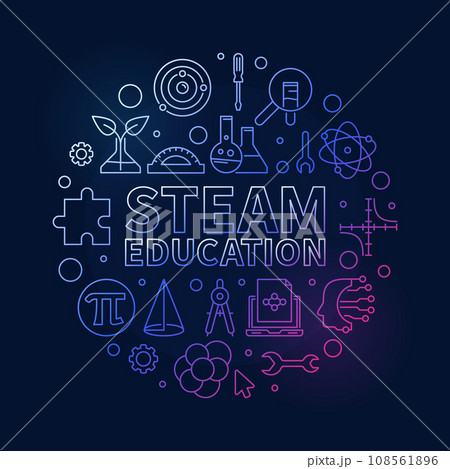 STEAM Education colored illustration. Science, Technology, Engineering, Arts and Math round banner