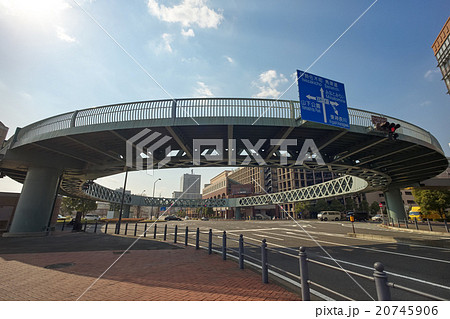 円形歩道橋(サークルウォーク)の全形を超広角撮影、横浜