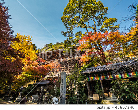 書写山円教寺と紅葉したモミジの風景